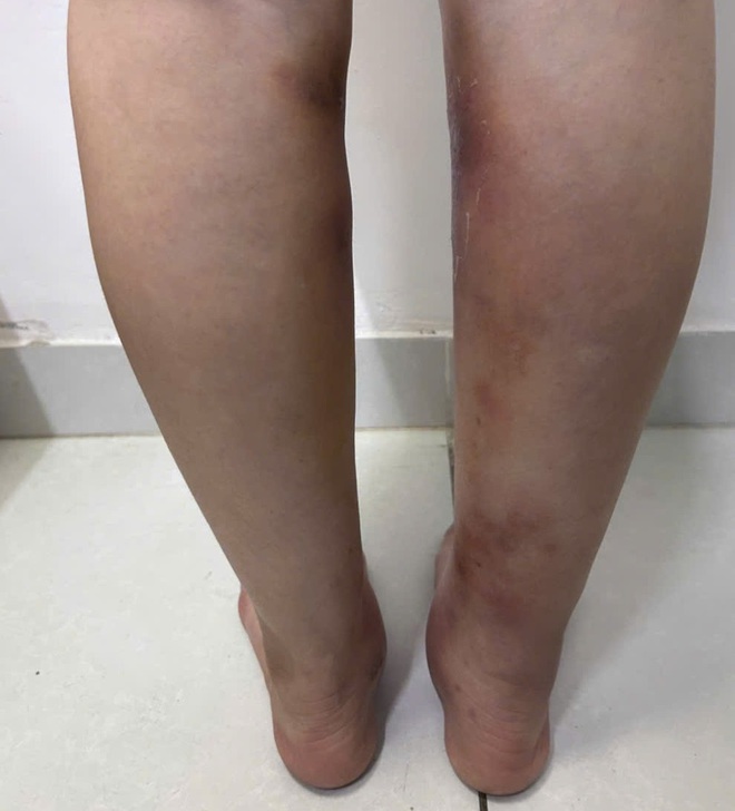 Hình ảnh chân biến dạng của bệnh nhân sau tiêm filler để làm thẳng chân. Ảnh BVCC