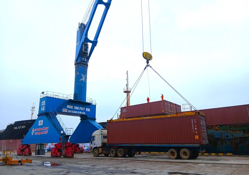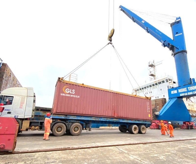 Năm 2025, tuyến vận chuyển quốc tế từ Cảng Cửa Lò đi Cảng Đông Quan (Trung Quốc) được khai trương đã tạo thêm hướng đi mới cho hoạt động xuất nhập khẩu, nâng cao năng lực cạnh tranh của cảng. Ảnh: Mai Liễu