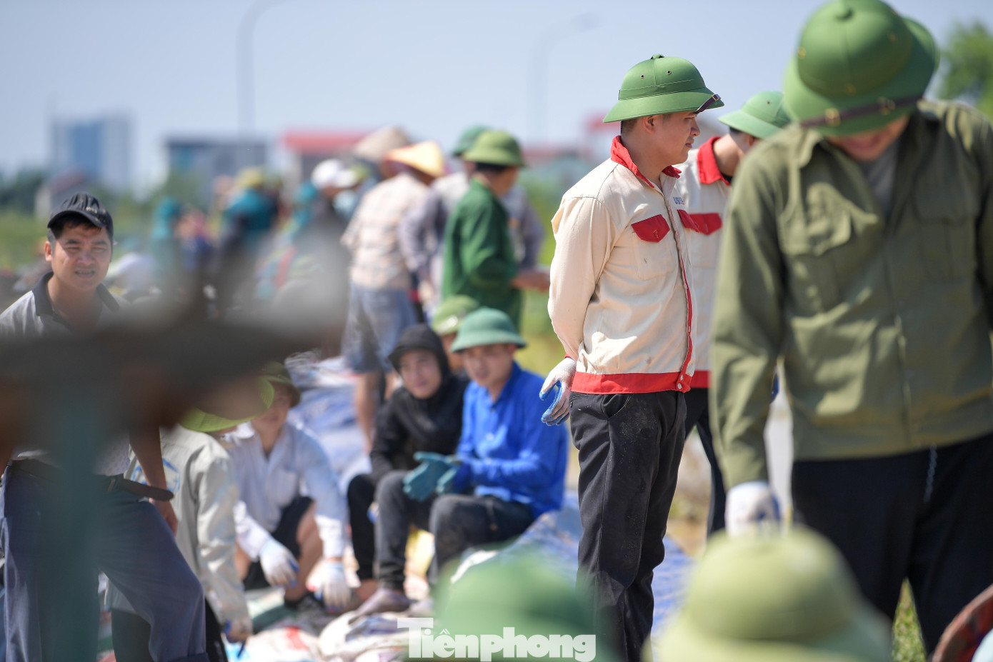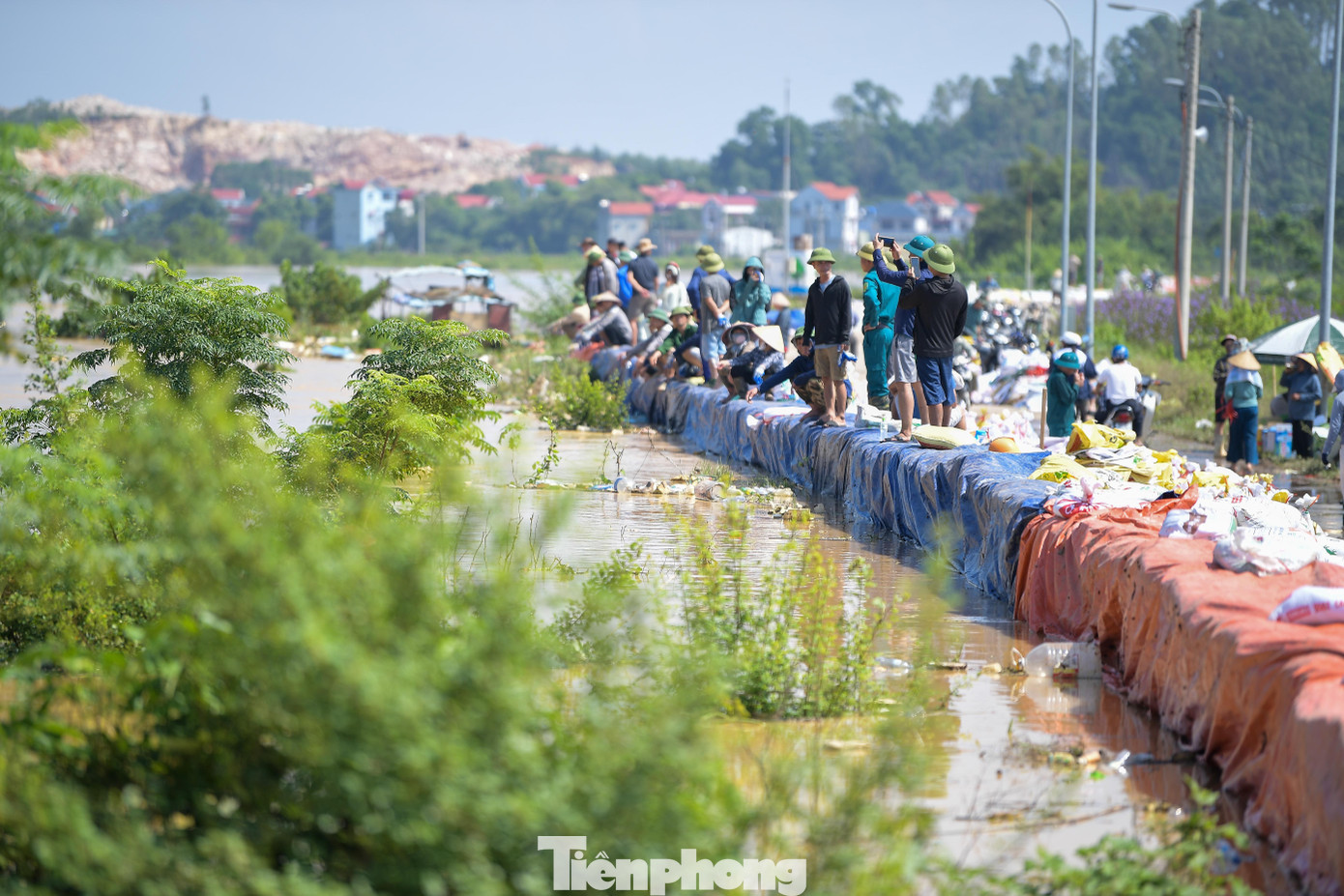 Dòng người vẫn tấp nập trên mặt đê Đẩu Hàn. Mặc dù nước sông Cầu đã bắt đầu rút nhẹ, các lực lượng vẫn không rời vị trí. Họ thay phiên nhau kiểm tra từng điểm thấm, bổ sung bao tải cát và gia cố chân đê bằng bạt chống thấm.