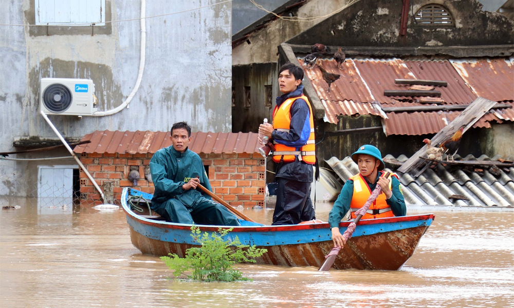 Lực lượng cứu hộ ứng cứu người dân vùng ngập lũ.