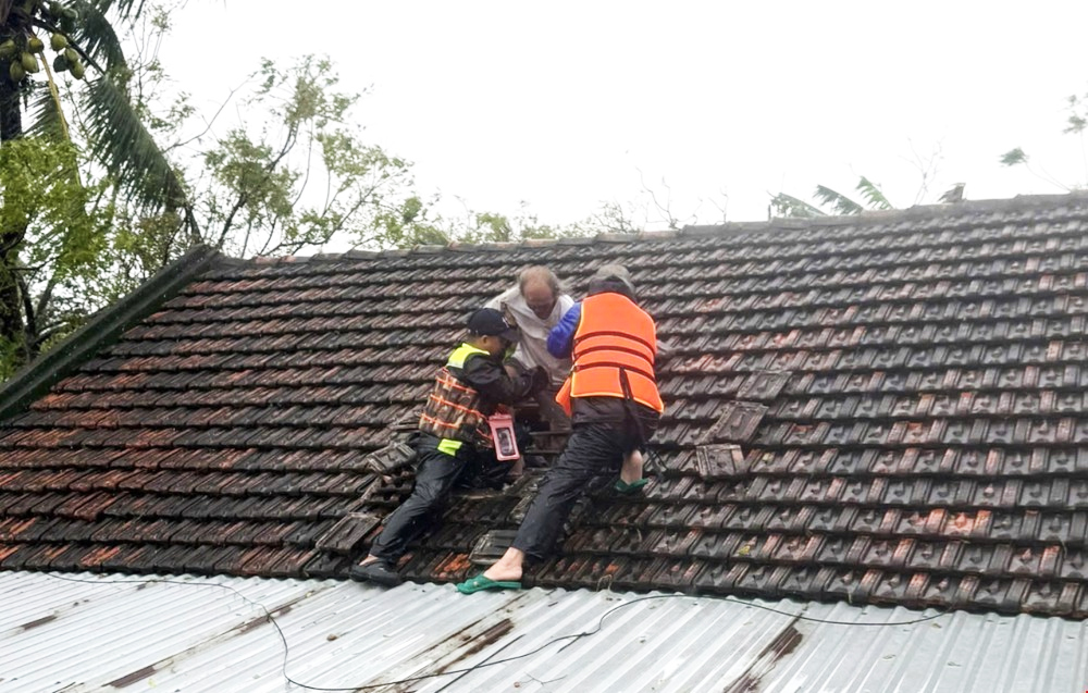 Lực lượng cứu hộ sơ tán một cụ già tại phường Tuy Hòa (tỉnh Đắk Lắk) đến nơi an toàn.