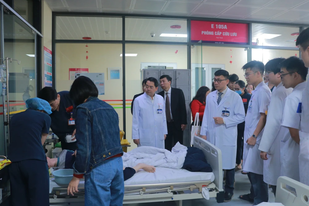 Trong thời khắc chuyển giao năm mới, các y bác sĩ Bệnh viện E đã liên tục tiếp nhận, xử trí nhiều ca cấp cứu nguy kịch. Ảnh: BVCC