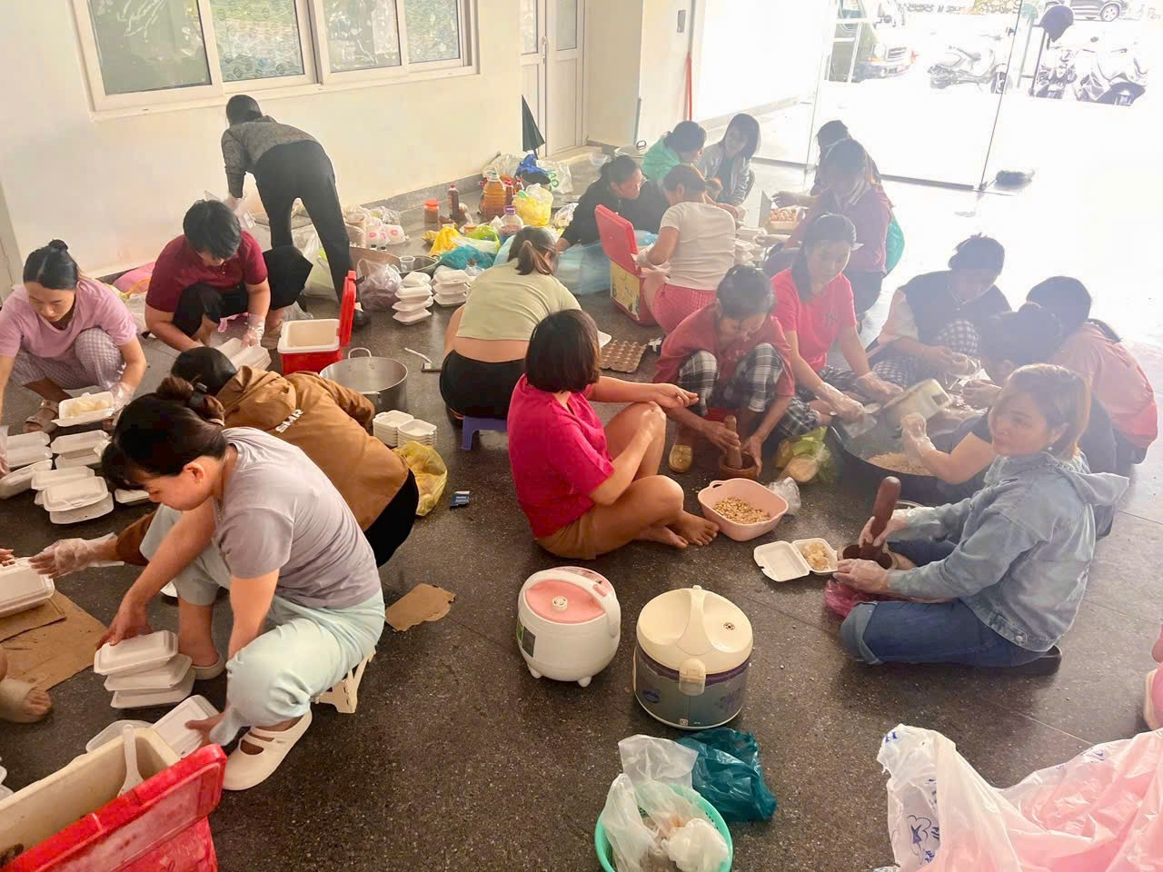 Cư dân khu chung cư Vùng 4 Hải quân nấu đồ ăn để hỗ trợ người dân vùng ngập lụt Ảnh: Ảnh Thanh Thanh