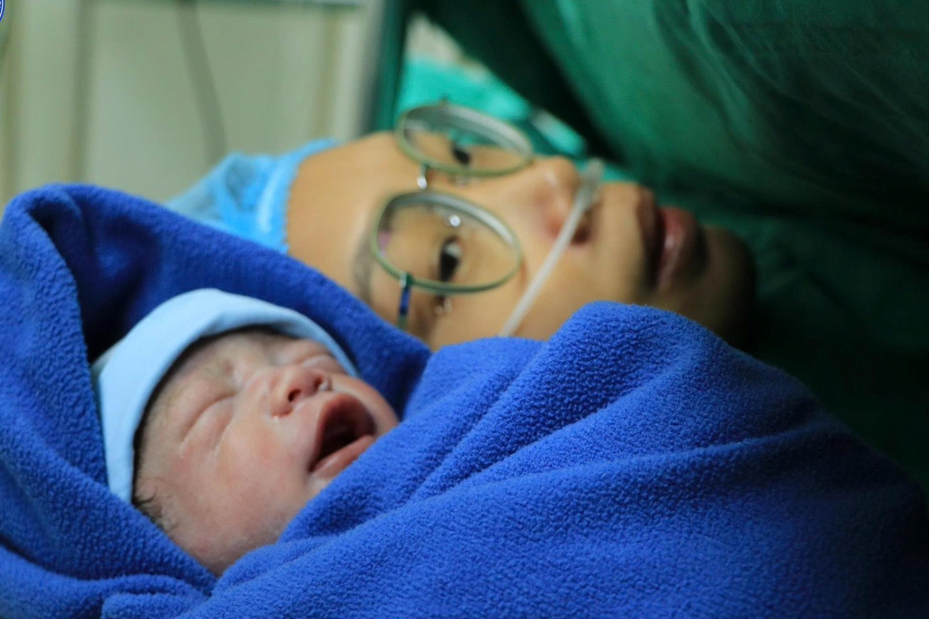 Bé trai chào đời an toàn, cân nặng 2300gr, hồng hào, khỏe mạnh, cất tiếng khóc to trong niềm vỡ òa xúc động của sản phụ và tập thể thầy thuốc. Ảnh: BVCC