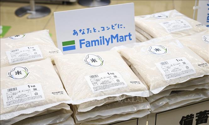 Gạo được bán tại cửa hàng tiện lợi ở Tokyo, Nhật Bản. Ảnh: Kyodo/TTXVN