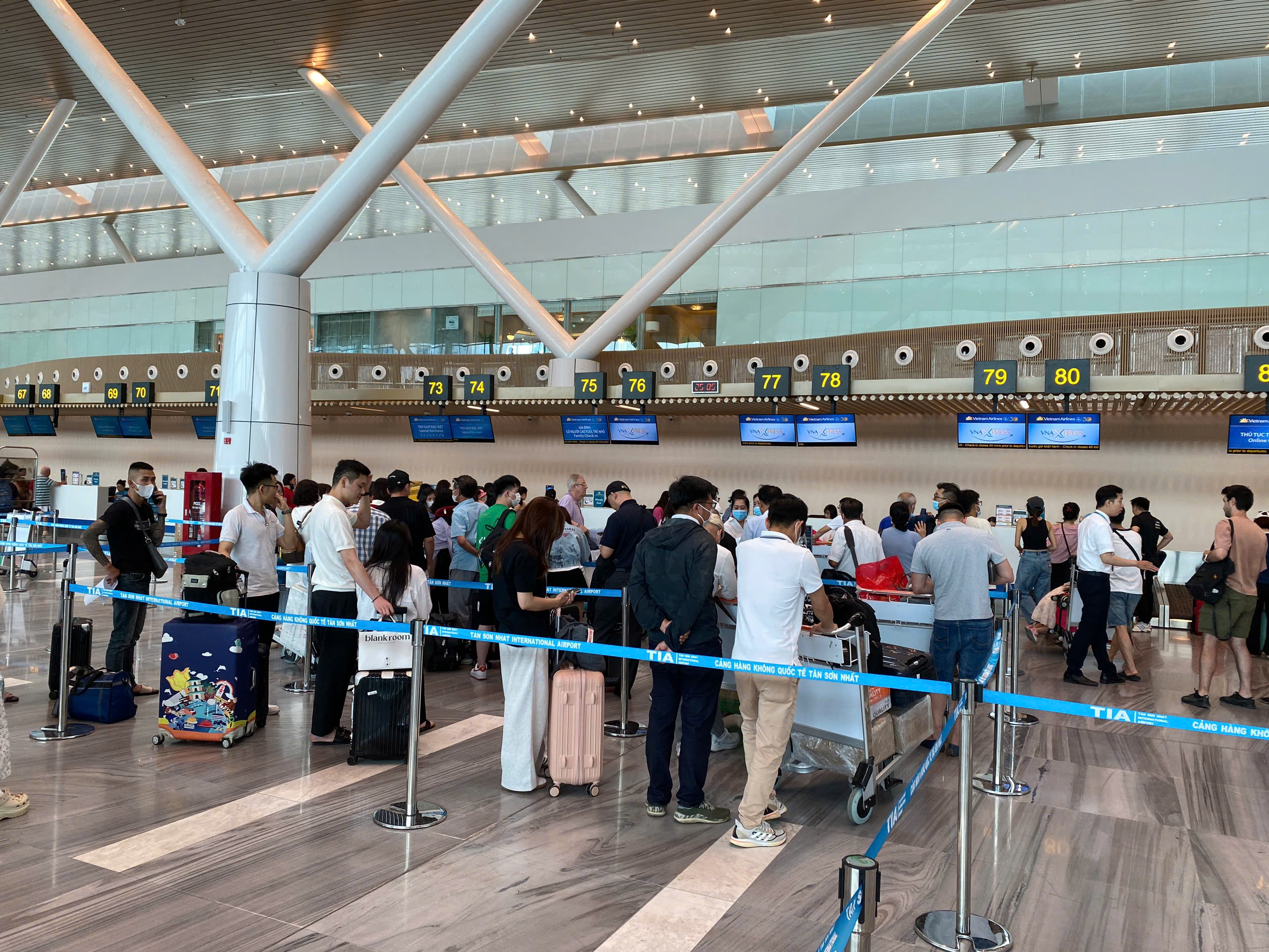 Hành khách làm thủ tục tại nhà ga T3. (Ảnh: Mỹ Quỳnh)