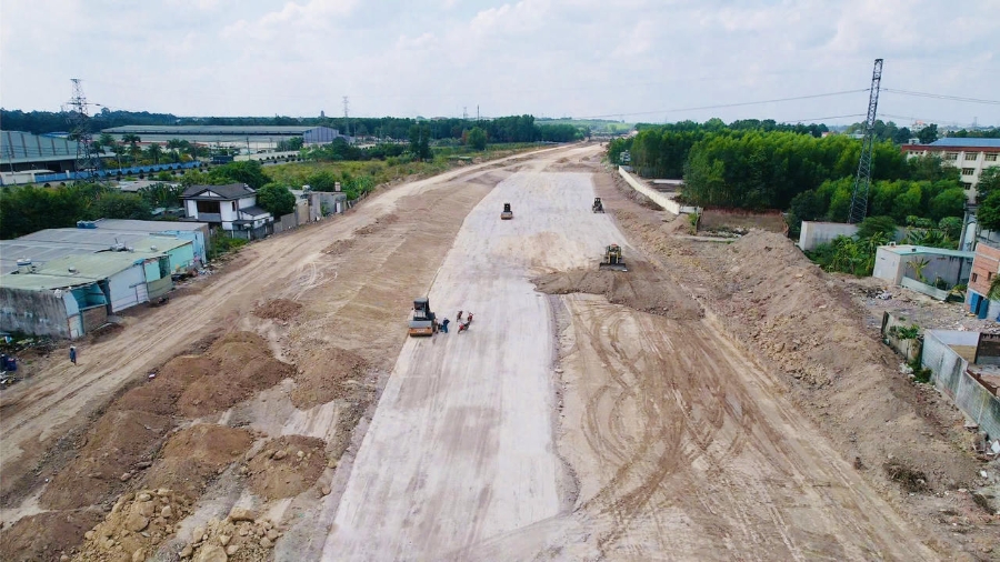 Công trường thi công nút giao đường Võ Nguyên Giáp với cao tốc Biên Hòa - Vũng Tàu, dự án thành phần 1 (đoạn qua Đồng Nai). Ảnh: Phạm Tùng