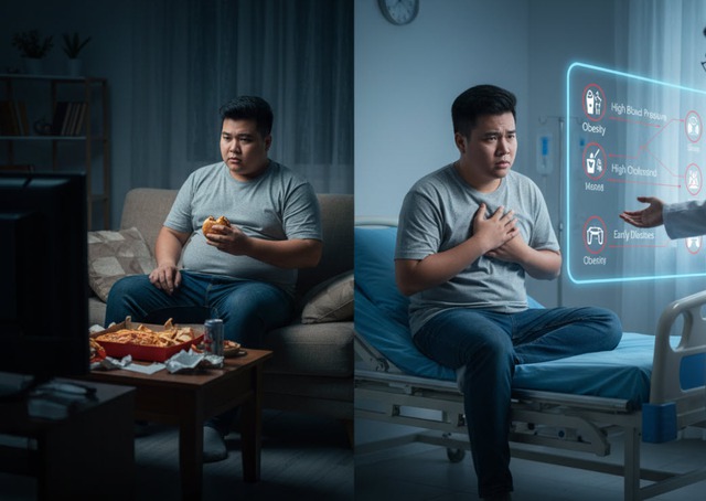 Tăng cân nhanh chóng, đặc biệt là mỡ nội tạng (visceral fat), là lực đẩy lớn gây ra đề kháng insulin, tăng huyết áp. Người trẻ ít vận động — ngồi nhiều, chơi điện tử, sử dụng thiết bị kỹ thuật số kéo dài — khiến cơ thể không tiêu hao đủ năng lượng, tích mỡ dễ dàng.