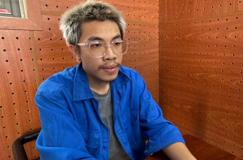 Đỗ Hoàng Long tại cơ quan điều tra. Ảnh: Ngọc Oanh