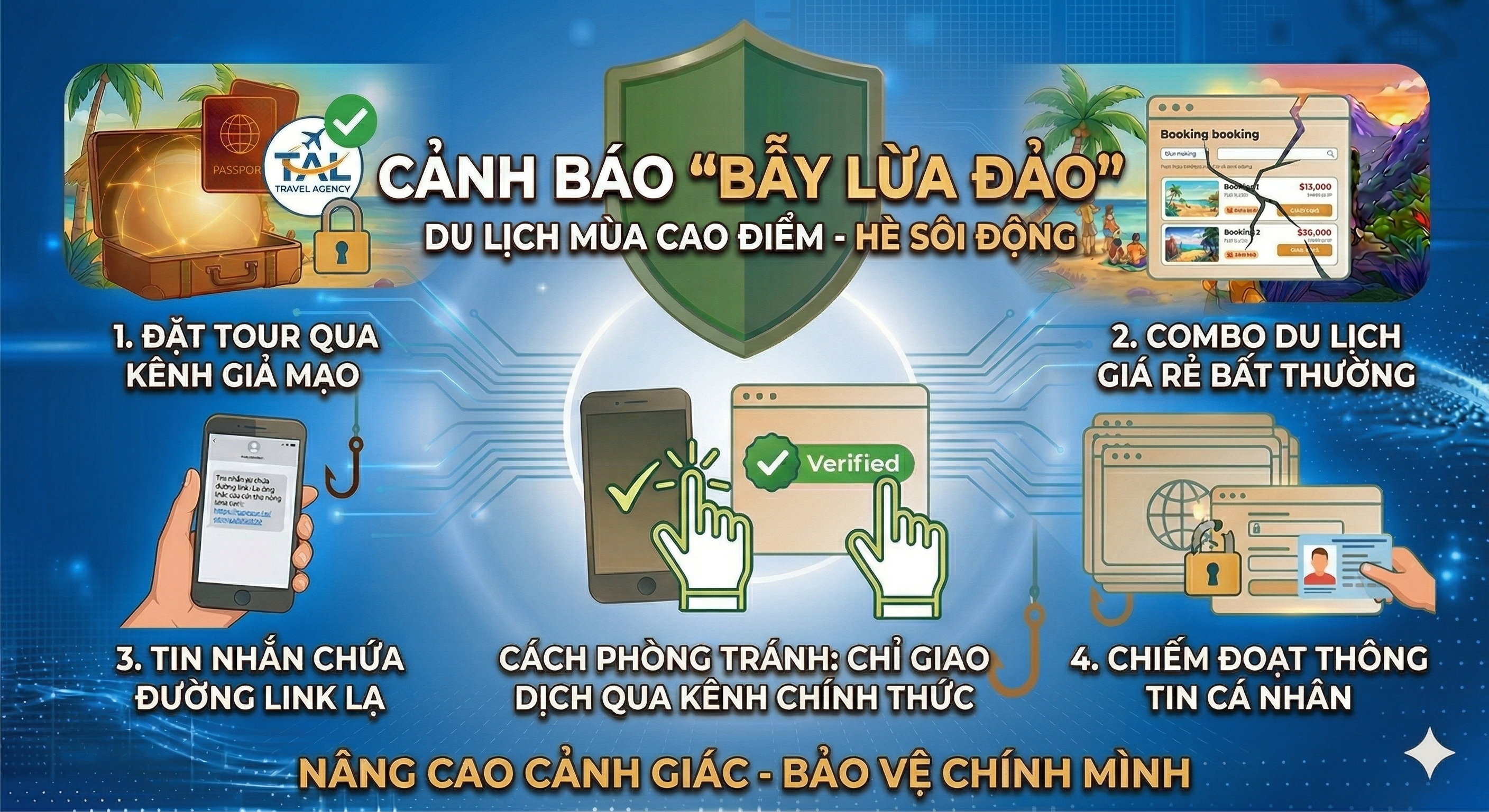 Trước thực trạng này, cơ quan chức năng khuyến nghị người dân và du khách nâng cao cảnh giác khi giao dịch. Người dân chỉ nên đặt dịch vụ qua các kênh chính thức, doanh nghiệp uy tín, có đầy đủ thông tin pháp lý và tuyệt đối không chuyển tiền vào tài khoản cá nhân khi chưa xác minh rõ ràng. Đồng thời, du khách cần tránh truy cập các đường link lạ, không cung cấp thông tin bảo mật và hạn chế chia sẻ công khai lịch trình cá nhân trên mạng xã hội.