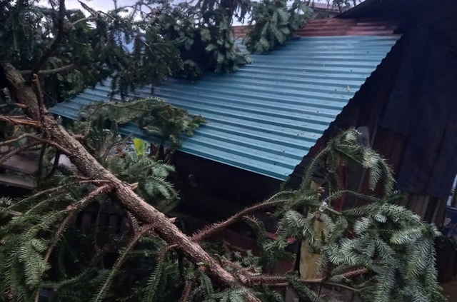 Lốc làm tốc mái, một số cây đổ vào nhà dân ở xã Thu Lũm, tỉnh Lai Châu.