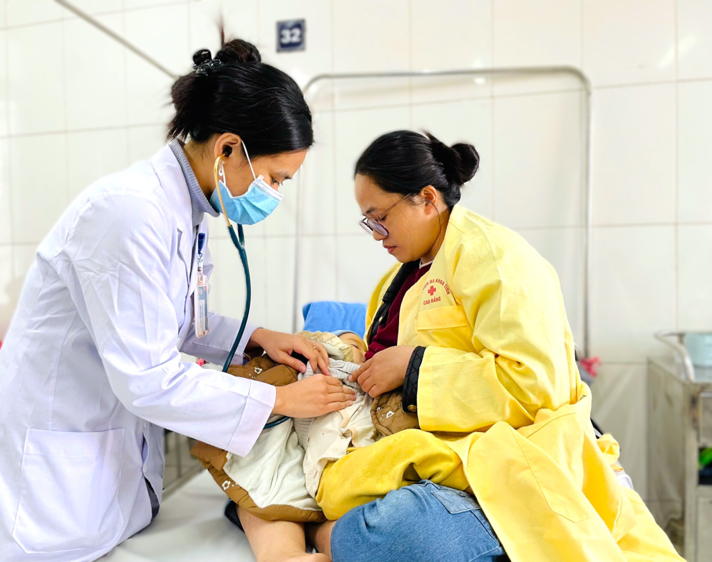 Bác sĩ thăm khám cho bệnh nhi mắc cúm đang điều trị tại Bệnh viện Đa khoa tỉnh.