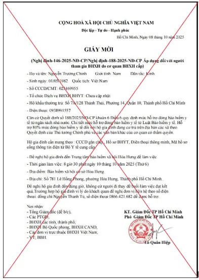 BHXH TP.HCM khẳng định không ban hành văn bản có nội dung như trên, cũng như không gửi “Giấy mời” đến người dân qua mạng xã hội, email hoặc các hình thức không chính thống.