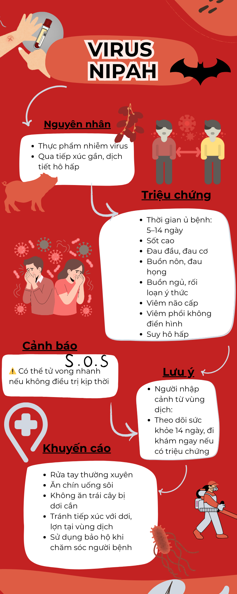 Theo ghi nhận từ Tổ chức Y tế Thế giới (WHO) và các báo cáo dịch tễ mới nhất tính đến cuối tháng 1/2026, virus Nipah đang gây lo ngại lớn do độc lực mạnh và chưa có vaccine phòng ngừa. Loại virus này lây truyền từ động vật sang người (zoonotic), với vật chủ tự nhiên là loài dơi ăn quả .