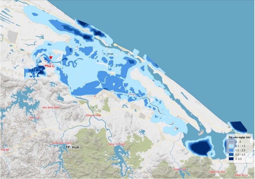 Bản đồ nguy cơ ngập lụt hạ lưu sông Bồ, sông Hương (Thành phố Huế)
