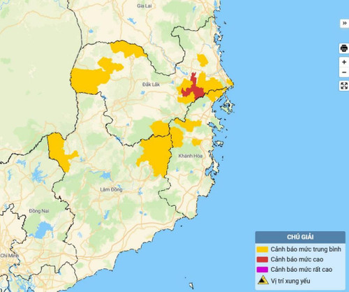 Bản đồ nguy cơ lũ quét, sạt lở đất đá trên các khu vực.