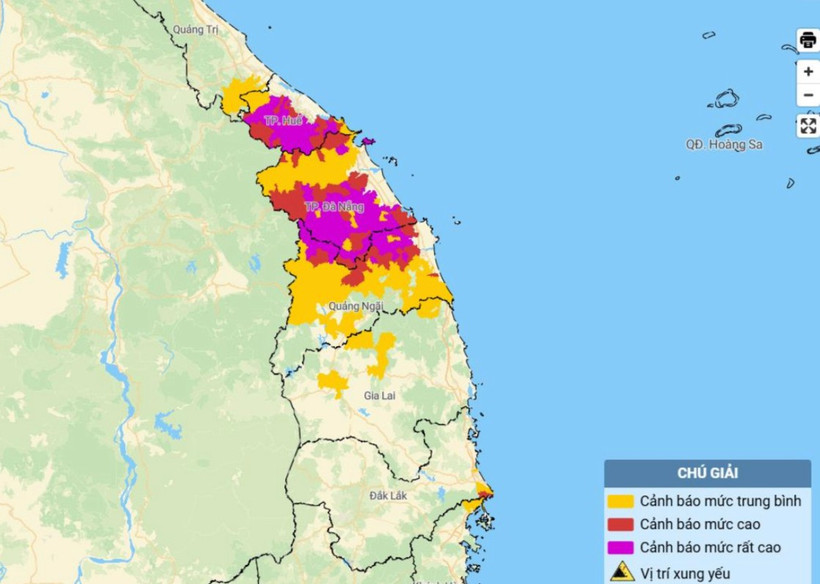 Cảnh báo mưa trong thời gian 3-6 giờ tới, khu vực các tỉnh trên tiếp tục có mưa với lượng mưa tích lũy phổ biến như sau: Quảng Trị từ 5-20mm, có nơi trên 40mm; thành phố Huế, thành phố Đà Nẵng từ 50-80mm, có nơi trên 120mm; Quảng Ngãi đến Khánh Hòa từ 30-60mm, có nơi trên 50mm.