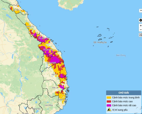 Bản đồ nguy cơ lũ quét, sạt lở đất đá trên các khu vực.