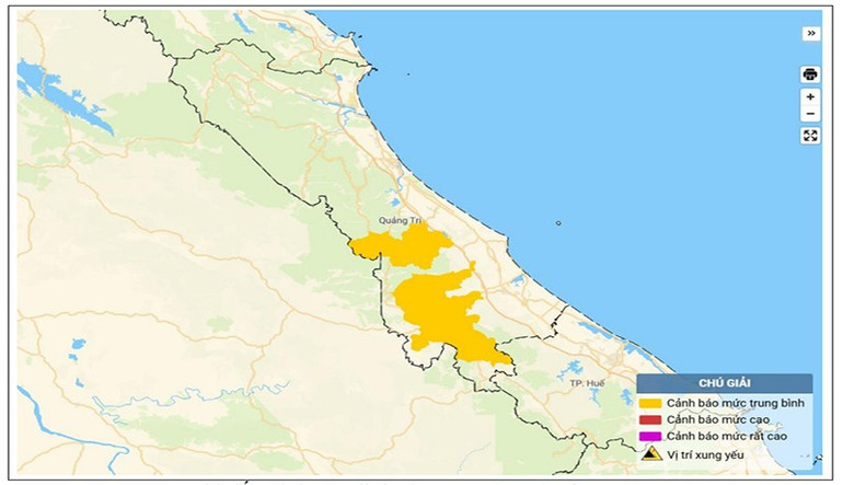 Bản đồ nguy cơ lũ quét, sạt lở đất đá trên khu vực Quảng Trị.