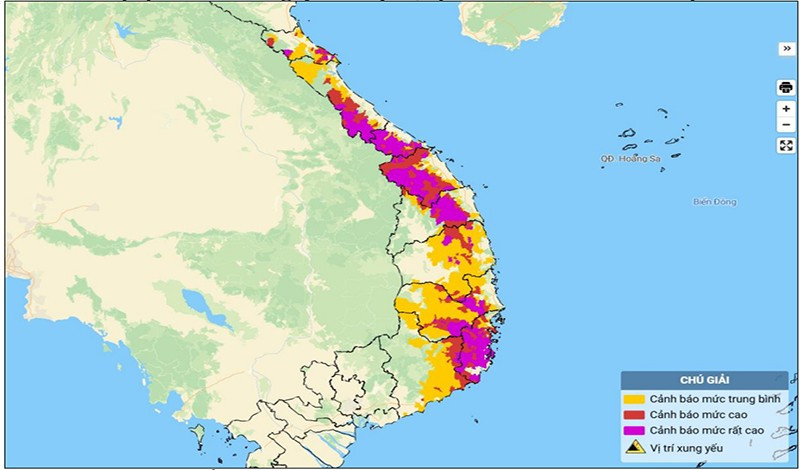 Cảnh báo cấp độ rủi ro thiên tai do lũ quét, sạt lở đất, sụt lún đất do mưa lũ hoặc dòng chảy: Cấp 1; thành phố Huế và Khánh Hòa: Cấp 2.