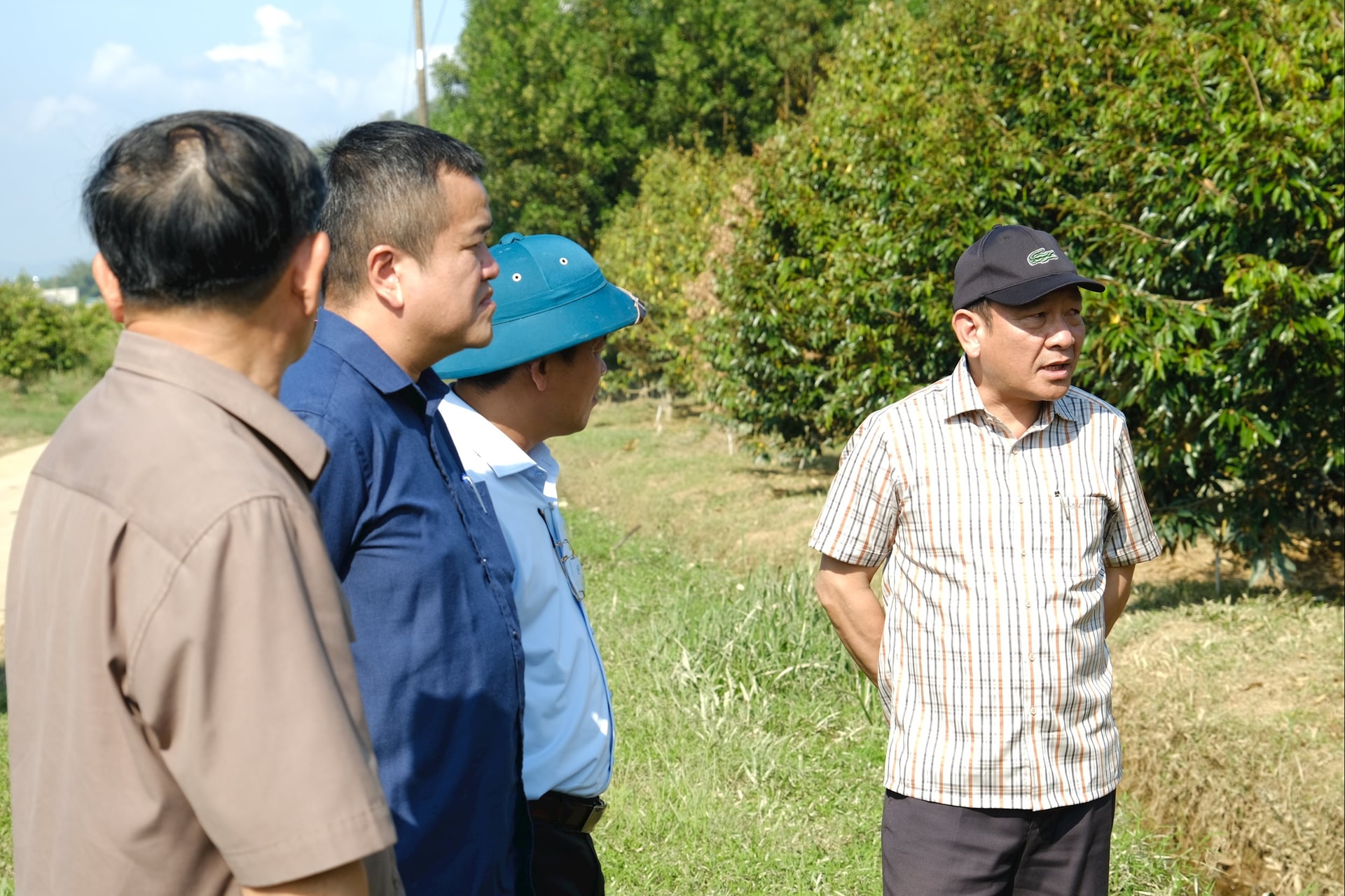 Đồng chí Bùi Thắng, Phó Bí thư Tỉnh ủy Lâm Đồng đi kiểm tra tình hình thiệt hại tại các vườn sầu riêng trên địa bàn xã Cát Tiên chiều 2/12