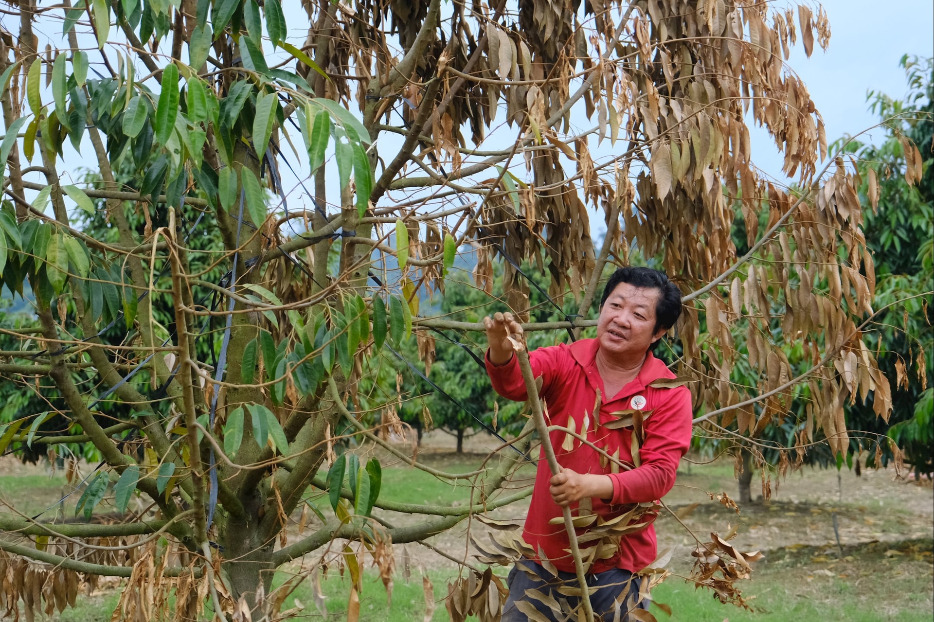 Nông dân lựa chọn giải pháp cắt tỉa bớt cành khô héo để cứu cây