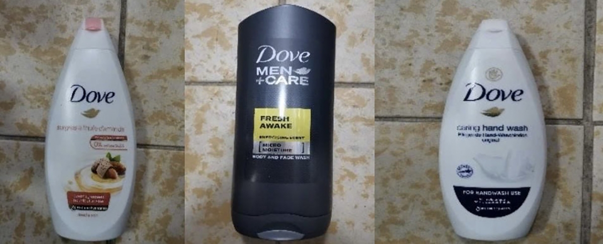 Các sản phẩm thuộc diện thu hồi gồm sữa tắm Dove surgras à l'huile d'amande douche 400ml (xuất xứ Hà Lan), sữa tắm và rửa mặt Dove MEN+CARE Fresh Awake Energising Scent 400ml (xuất xứ Vương quốc Anh), cùng nước rửa tay Dove (xuất xứ Đức). Bên cạnh đó, danh sách cảnh báo còn ghi nhận xịt khử mùi Rexona Sensitive Anti-Perspirant 48H 150ml, dầu gội Elseve Total Repair 5 Extreme 250ml và mặt nạ tóc Garnier Fructis Capelli Secchi 300ml do không đáp ứng tiêu chuẩn thành phần theo quy định của EU.