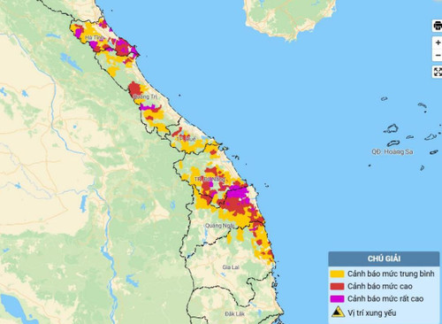 Cảnh báo cấp độ rủi ro thiên tai do lũ quét, sạt lở đất, sụt lún đất do mưa lũ hoặc dòng chảy: Cấp 1; riêng Hà Tĩnh và Quảng Ngãi: Cấp 2.