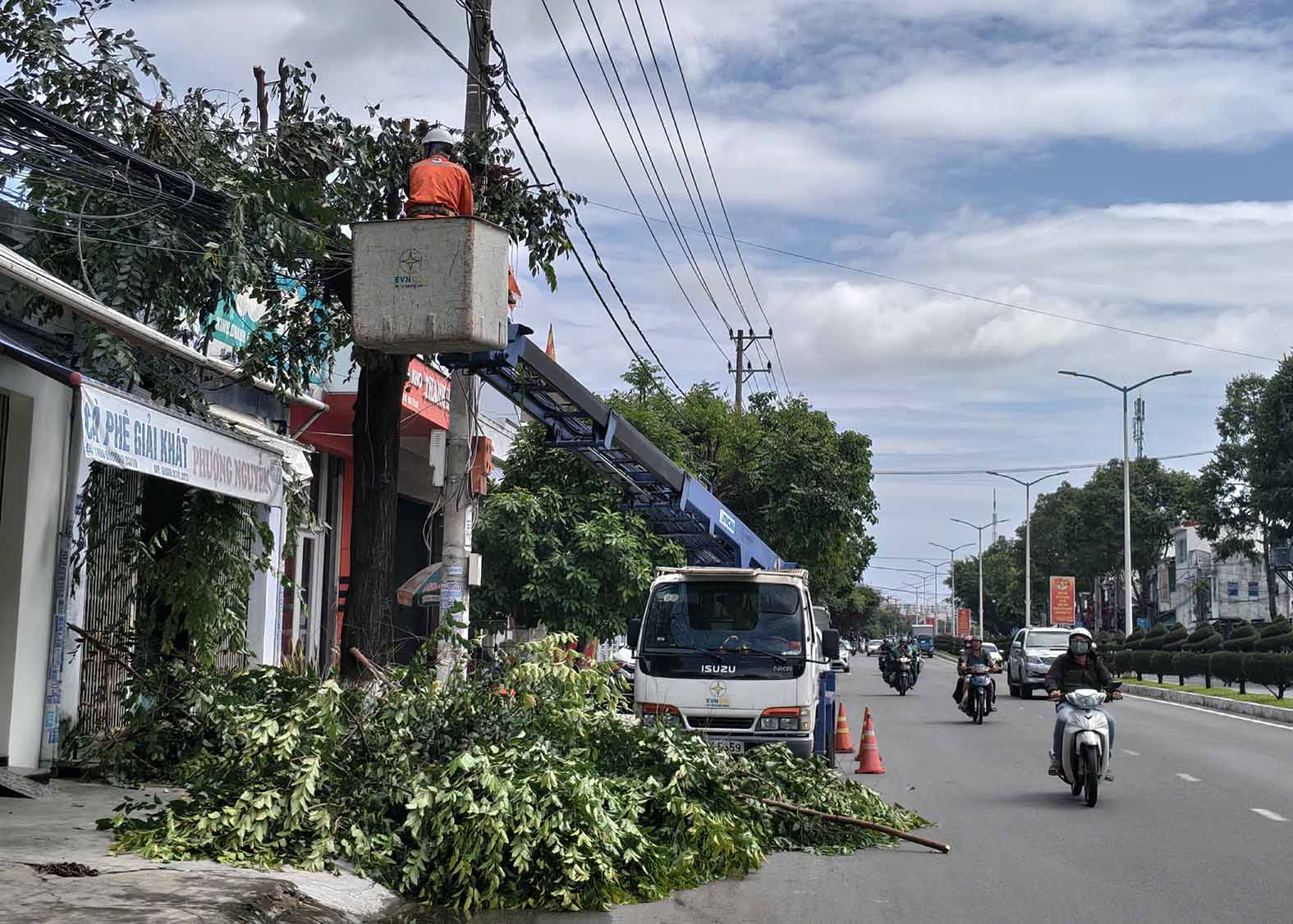 Cắt tỉa cây xanh để ứng phó mưa bão tại phường Tây Nha Trang (Khánh Hòa). Ảnh: HIẾU GIANG