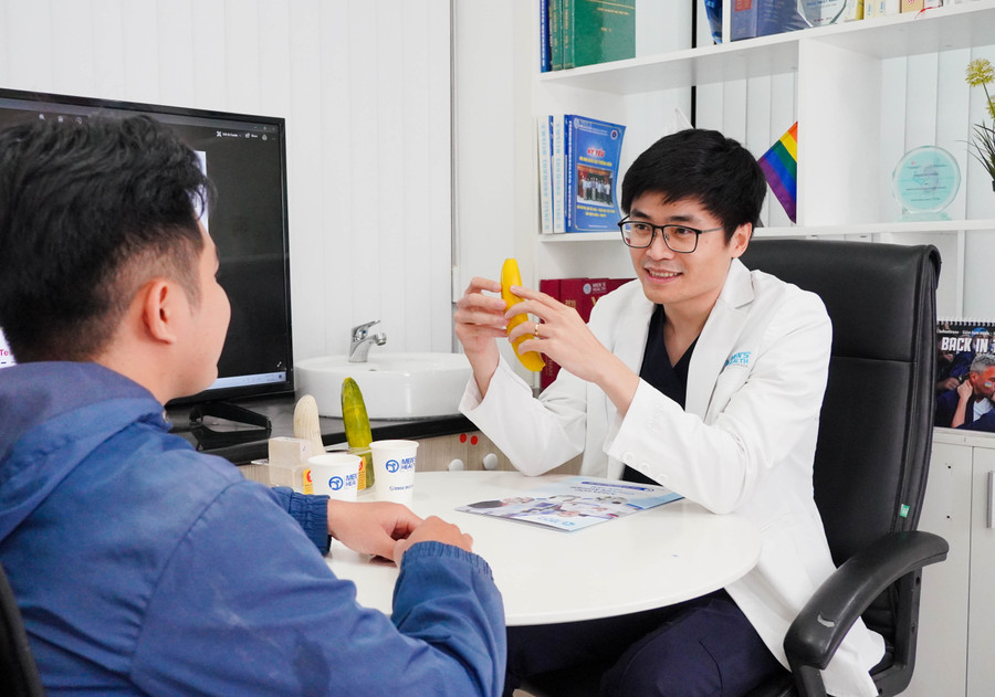 BS Trần Quang Vinh – Trung tâm Sức khỏe Nam giới Men’s Health, đang tư vấn cho bệnh nhân.