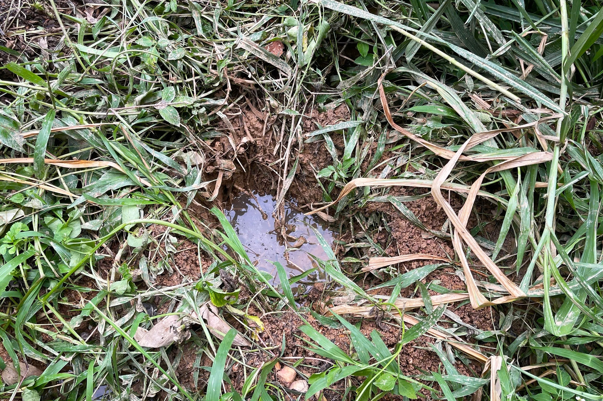 Người dân phát hiện nhiều dấu chân lớn của voi trên khu đất canh tác của mình