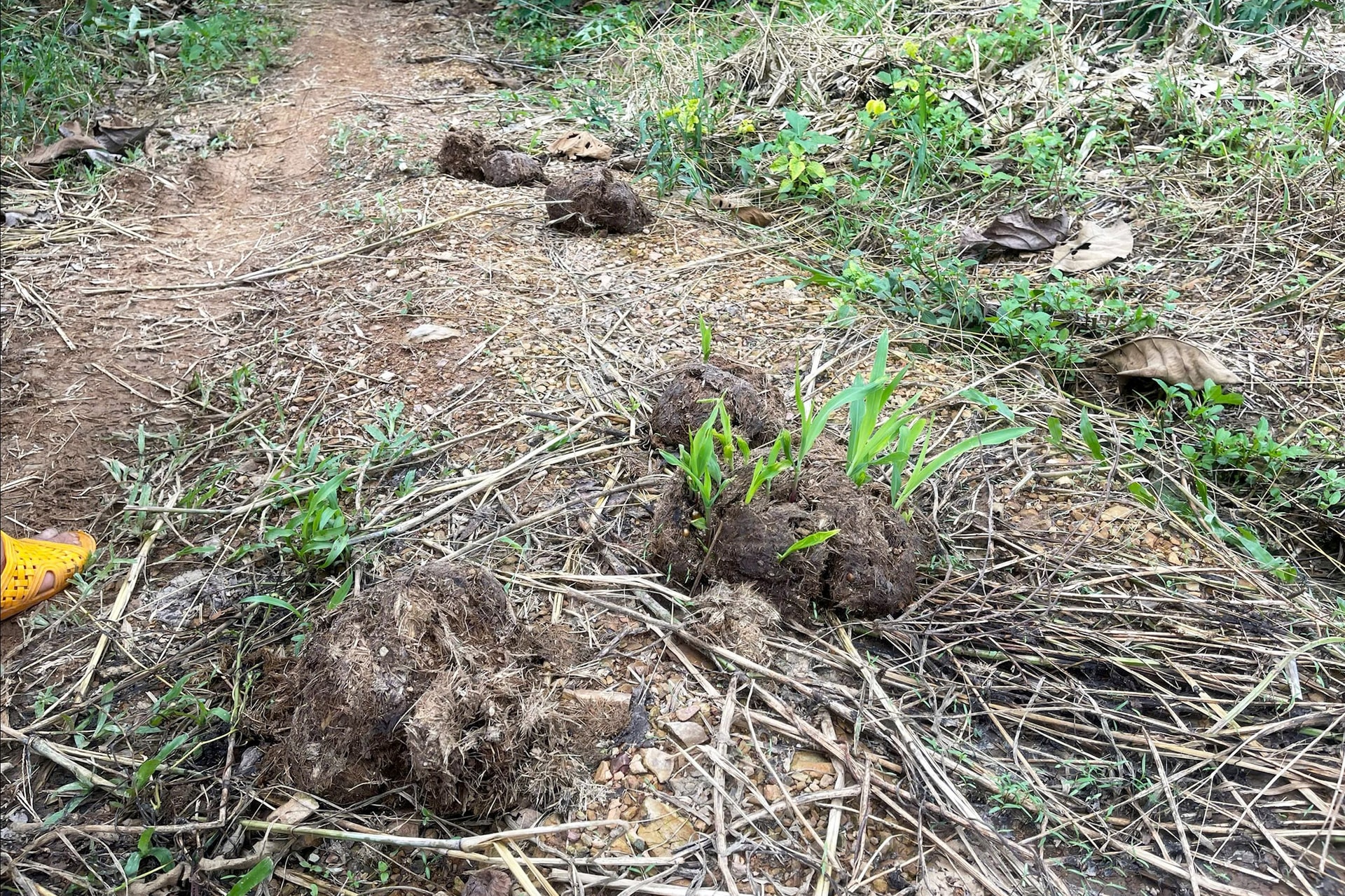 Một số cá thể voi rừng xuất hiện và để lại dấu vết (trong ảnh là phân voi) gần đất canh tác, nhà cửa của người dân xã Đắk Wil