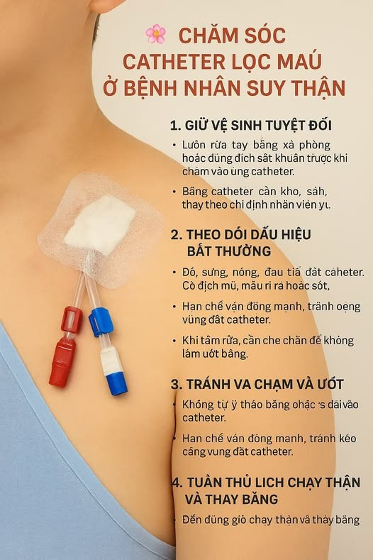 Mọi vấn đề liên quan đến catheter cần được xử lý bởi nhân viên y tế chuyên khoa, không tự ý can thiệp tại nhà.