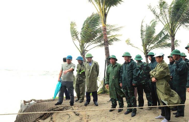 Tại phường Hội An Tây, chính quyền địa phương cho biết, do ảnh hưởng của bão số 12, khu vực bờ biển thuộc khối phố Tân Thành bị sạt lở hơn 100m, sóng đánh sâu vào bờ gần 30m. Lực lượng quân sự, biên phòng, dân quân Bộ CHQS thành phố được huy động, sử dụng vật tư, phương tiện cơ giới, bao cát để đắp kè, ngăn sóng tấn công, bảo vệ khu dân cư ven biển. Cùng với đó, Quân khu 5 và địa phương xác định trên địa bàn còn nhiều điểm có nguy cơ sạt lở khác nếu mưa to, sóng lớn kéo dài. Đại tá Cao Văn Mười đề nghị địa phương cắm biển, căng dây cảnh báo và rào chắn ngăn người dân, du khách tiếp cận đồng thời chỉ đạo Bộ CHQS TP Đà Nẵng tiếp tục phân công lực lượng phối hợp túc trực theo dõi tình hình, diễn biến các điểm có nguy cơ sạt lở; lên phương án ứng phó, khắc phục kịp thời, hạn chế nguy cơ mất an toàn cho người dân. Đoàn công tác cũng tiến hành kiểm tra tại xã Đại Lộc - địa phương thường xảy ra tình trạng ngập lụt khi có mưa lớn. Theo báo cáo của chính quyền địa phương, trước đợt mưa lớn những hộ dân nằm trong khu vực xung yếu đã được bộ đội hỗ trợ sơ tán đến nơi an toàn. Quân khu yêu cầu các đơn vị duy trì nghiêm chế độ trực chỉ huy, trực ban, trực ứng cứu 24/24 giờ, chuẩn bị đầy đủ phương tiện sẵn sàng cơ động ứng cứu nhân dân khi có tình huống.