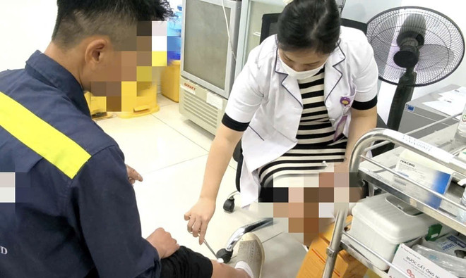Anh T.X.T. đến Bệnh viện Bệnh viện Bệnh Nhiệt đới Trung ương khám và tiêm vaccine phòng dại. (Ảnh: PV/Vietnam+)