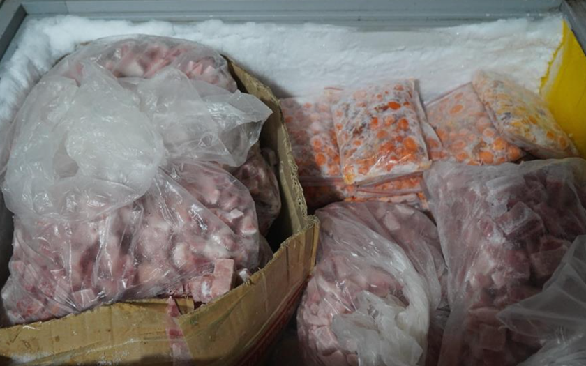 Một số thực phậm đông lạnh không rõ nguồn gốc được công an phát hiện, thu giữ tại Bắc Kạn vừa qua. Ảnh: công an cung cấp.