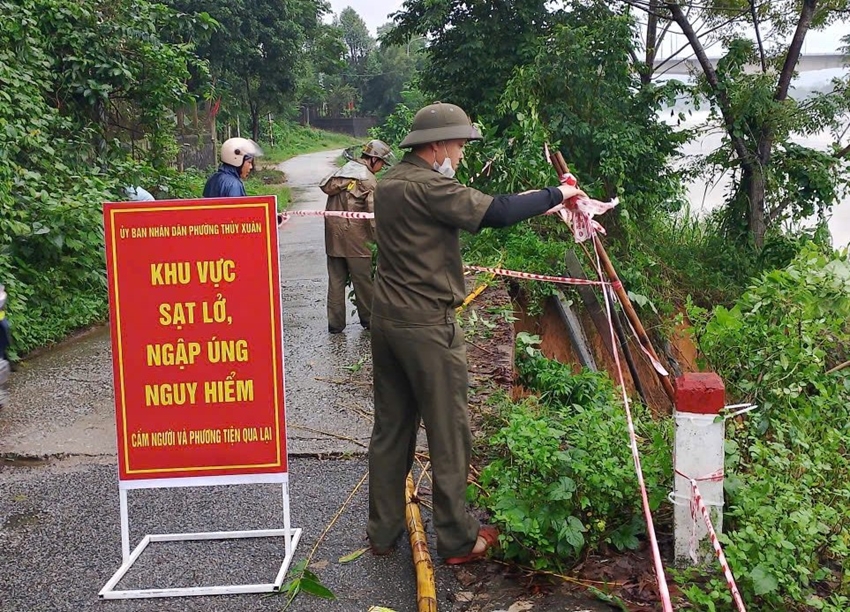 UBND phường Thủy Xuân đã đặt biển cảnh báo, giăng dây tại điểm sạt lở, đồng thời khuyến cáo người tham gia giao thông tuyệt đối chấp hành các biển cảnh báo nguy hiểm, không tự ý vượt qua khu vực rào chắn đã được cơ quan chức năng cảnh báo. Hạn chế di chuyển, tụ tập, dừng đỗ phương tiện tại các khu vực chân cầu, ta luy, bờ dốc hoặc ven sông suối trong thời gian mưa lớn; theo dõi các bản tin cảnh báo thời tiết, chủ động phòng tránh sạt lở và ngập úng cục bộ.