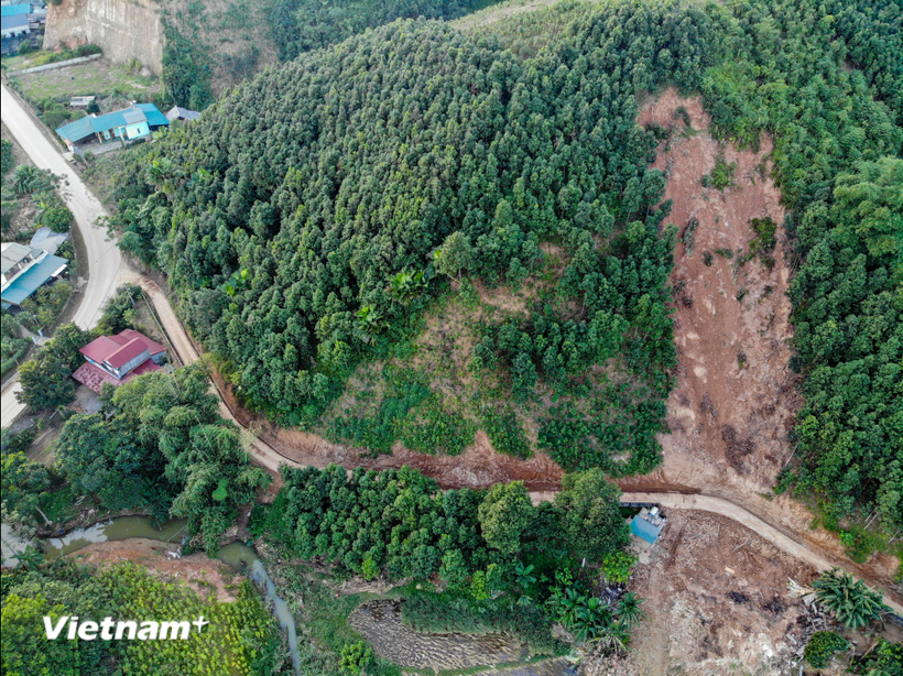 Khu vực sạt lở tại tỉnh Lai Châu. (Ảnh: Hoài Nam/Vietnam+)