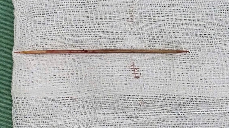 Dị vật là cây tăm tre được lấy ra khỏi ổ bụng bệnh nhân.
