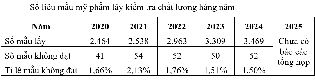 Số liệu thu hồi bao gồm sản phẩm vi phạm chất lượng và thu hồi các sản phẩm mỹ phẩm theo lộ trình do Hội đồng mỹ phẩm ASEAN quy định.