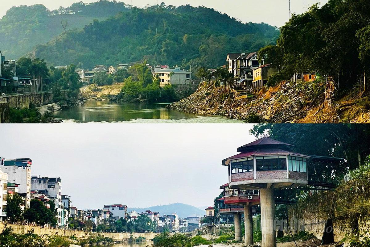 Không chỉ ngập lụt, sạt lở bờ sông đang trở thành mối đe dọa thường trực. Nhiều đoạn bờ sông Lô bị khoét sâu, từng mảng đất lớn sụt xuống chỉ sau một đêm mưa lũ.