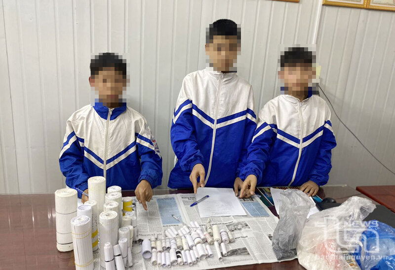 Tại hiện trường, lực lượng chức năng thu giữ 5 quả pháo tự chế. Các em khai nhận vì tò mò, muốn thử nghiệm làm pháo theo các clip trên mạng nên đã thực hiện, không nhận thức được việc tự chế pháo là hành vi trái phép, vi phạm pháp luật và tiềm ẩn hiểm họa khôn lường.