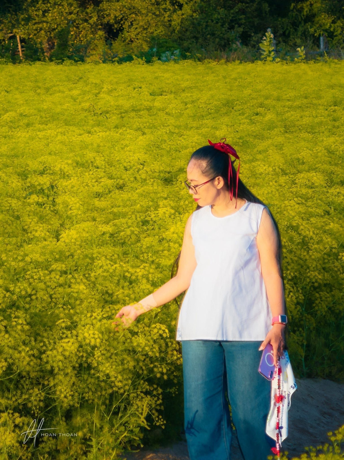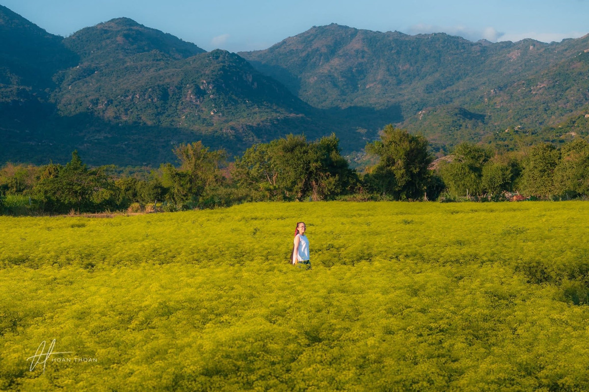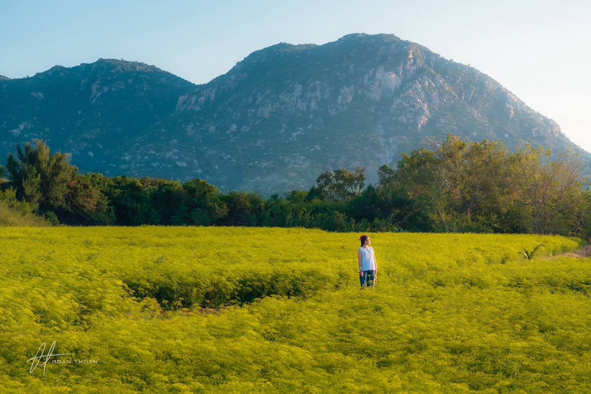 Điểm đặc biệt của cánh đồng nằm ở sự giao hòa giữa thiên nhiên và nét mộc mạc vùng quê. Những luống hoa thì là nhỏ li ti, mọc san sát, tạo thành lớp vàng óng ánh dưới nắng. Bao quanh là núi đồi, cây xanh và không gian thoáng đãng đặc trưng của miền Trung, khiến nơi đây trở thành bối cảnh lý tưởng cho những bộ ảnh du lịch mang gam màu ấm, tự nhiên và gần gũi.