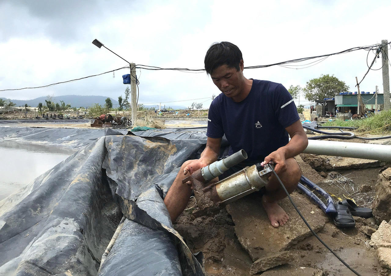 Ngoài việc khôi phục cơ sở hạ tầng, các hộ nuôi còn phải xử lý môi trường nước, cải tạo ao hồ trước khi tái thả giống. Quy trình này mất ít nhất 3–4 tuần, trong khi thời gian vụ Tết đang cận kề. Đa số các hộ dân đều “kiệt quệ” sau bão, không còn vốn để đầu tư. Ảnh: ĐB.