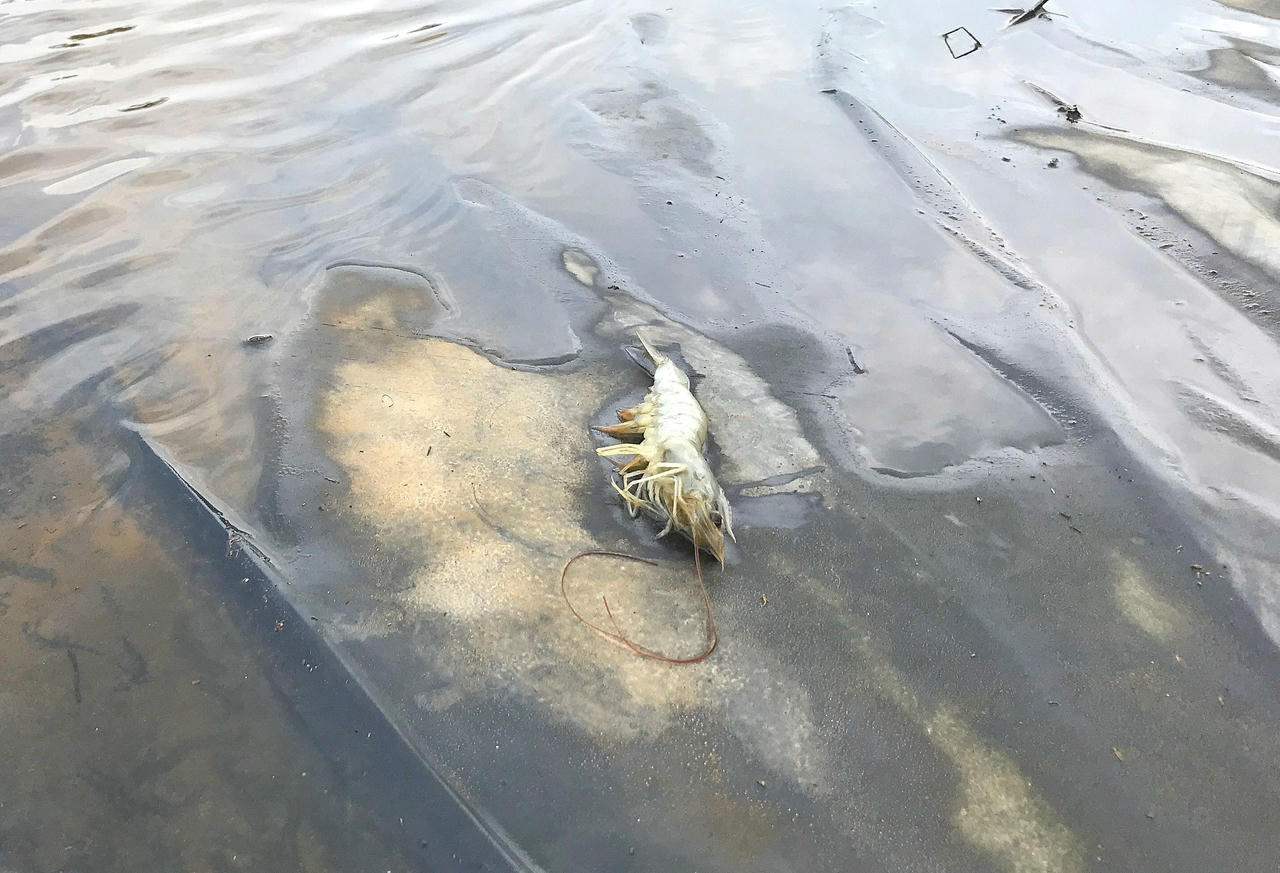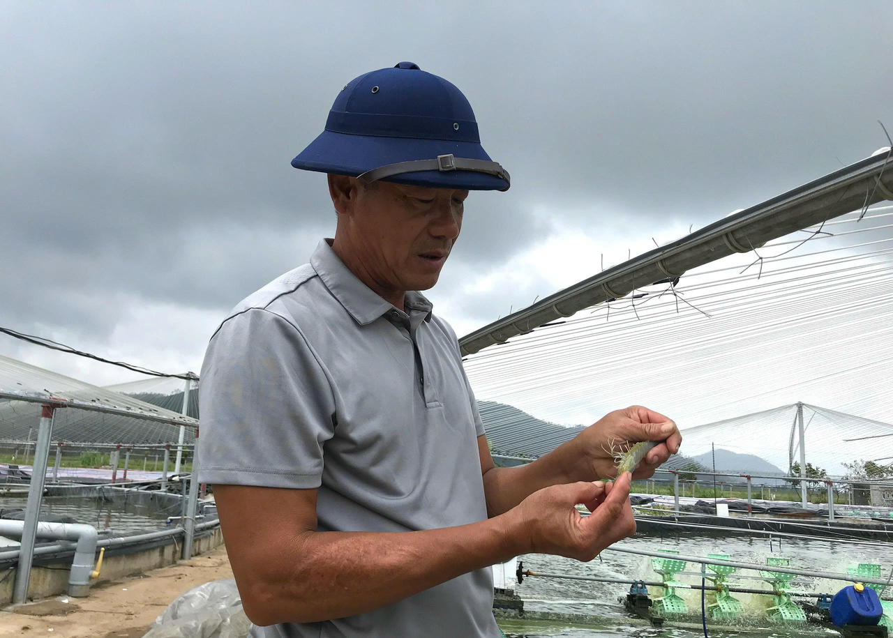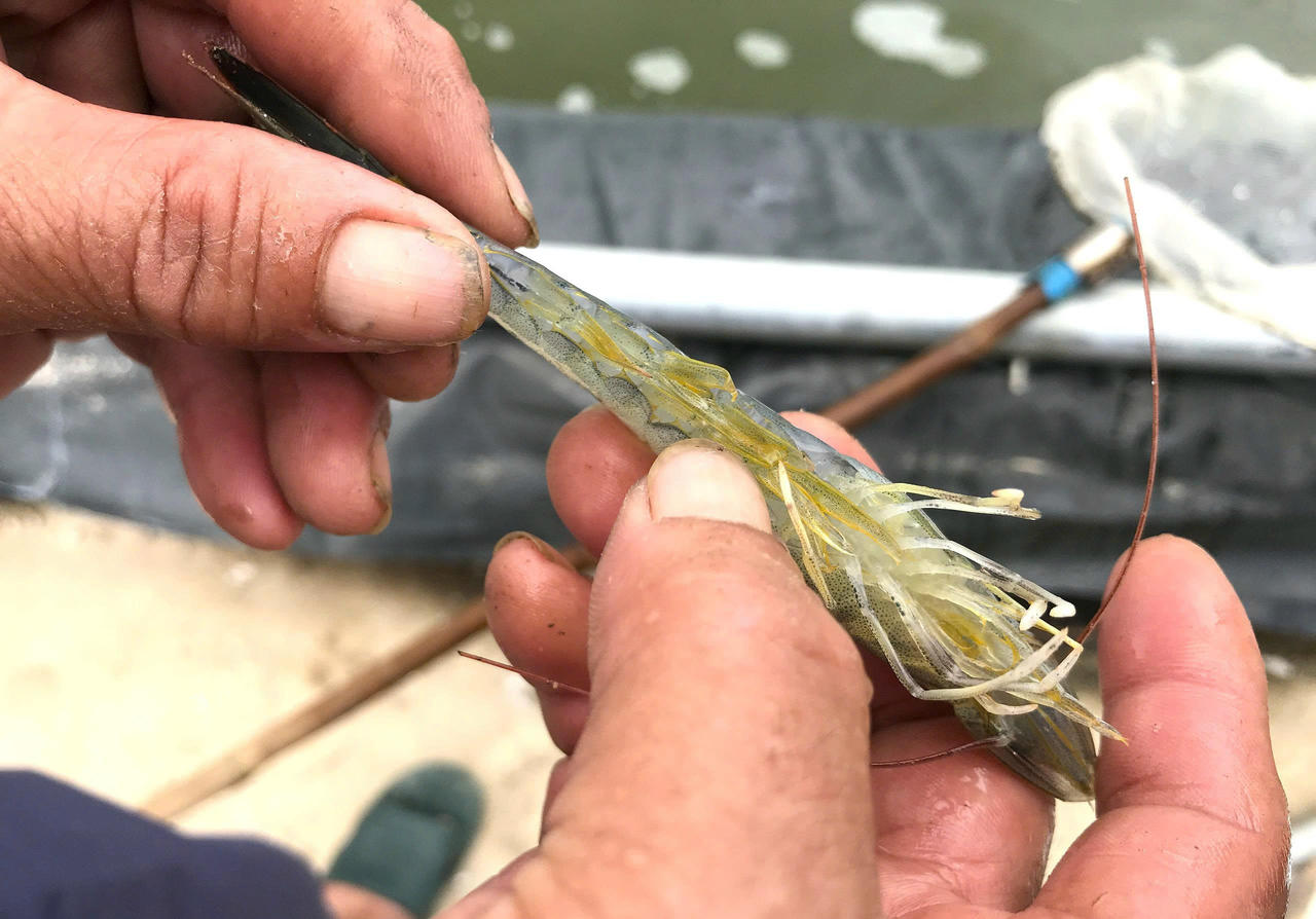 “Số tôm còn sót lại cũng nhiễm bệnh, có biểu hiện chân vàng. Thường thời điểm này đã thả giống cho vụ Tết, nhưng giờ phải lùi lại, chưa biết đến bao giờ mới khắc phục xong”, ông Cường nói. Ảnh: ĐB.