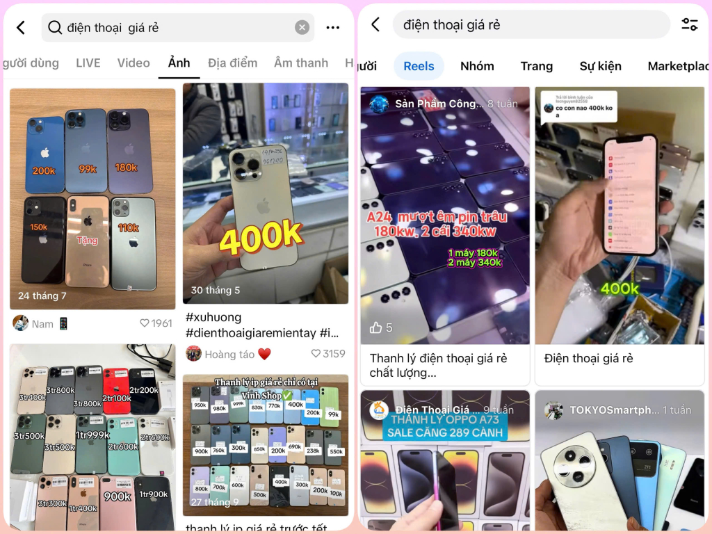 Những chiếc điện thoại giá rẻ được quảng cáo tràn lan trên mạng xã hội, dễ đánh vào tâm lý ham rẻ của người mua.