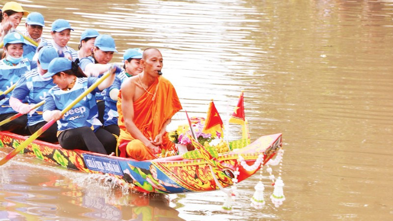 Lễ hội Ok Om Bok - Đua ghe ngo là một lễ hội truyền thống của đồng bào Khmer được tổ chức hằng năm. (Ảnh: TTXVN)