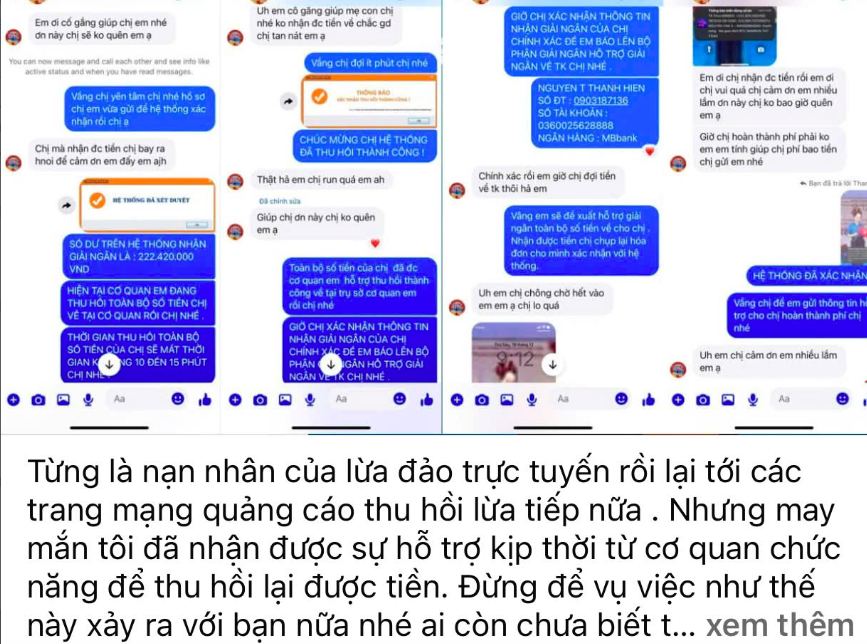 Các đối tượng còn giả danh những người từng bị lừa và đã “lấy lại được tiền” để dẫn dụ nạn nhân liên hệ.