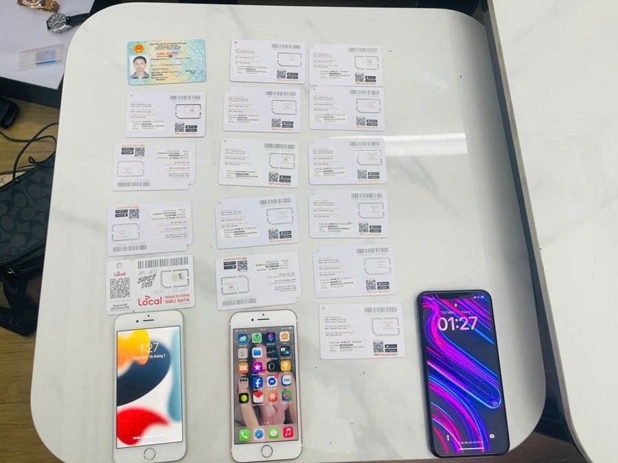 Thẻ sim và điện thoại các đối tượng dùng để thực hiện thủ đoạn lừa đảo "đặt vé xe"