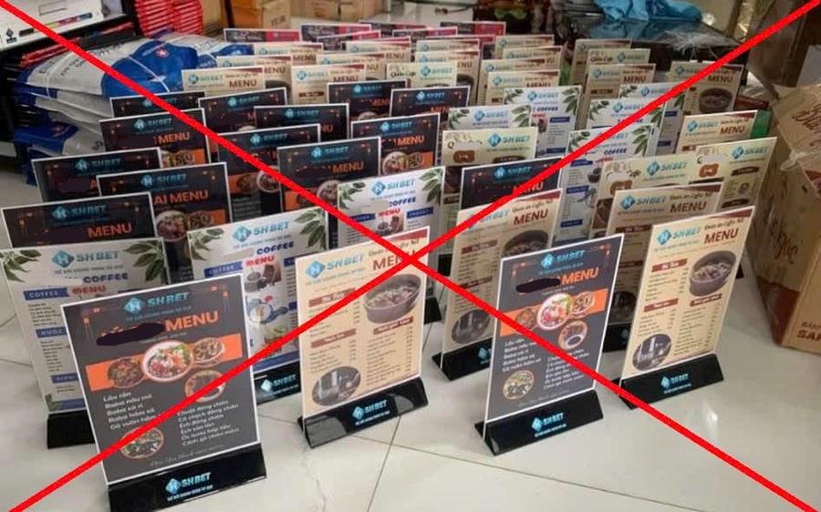 Nhiều tấm bảng ghi thực đơn của các quán ăn, uống có in logo quảng cáo trang web cờ bạc trực tuyến bị cơ quan chức năng thu giữ.